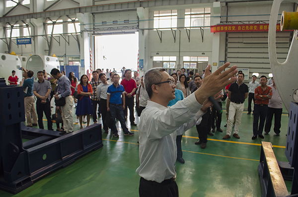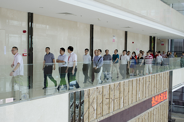 到达火炬开发区商会后,板芙商会一行人首先参观了火炬开发区商会,两地秘书处工作人员进行了简单的交流。随后,四地兄弟商会的企业家们到达中山市美捷时包装制品有限公司,在听取了工作人员对公司的介绍后,参观了该公司的GMP生产车间: